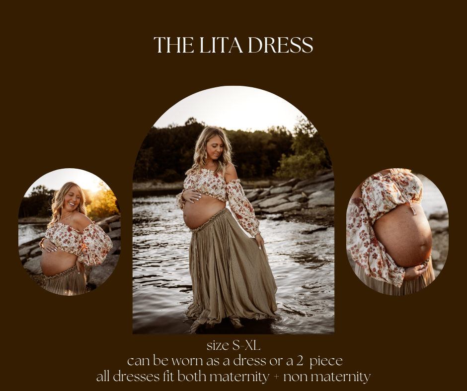 client closet dresses are available to all clients, free of charge during their session. All Two peices can be mixed and matched to create a unique look!
